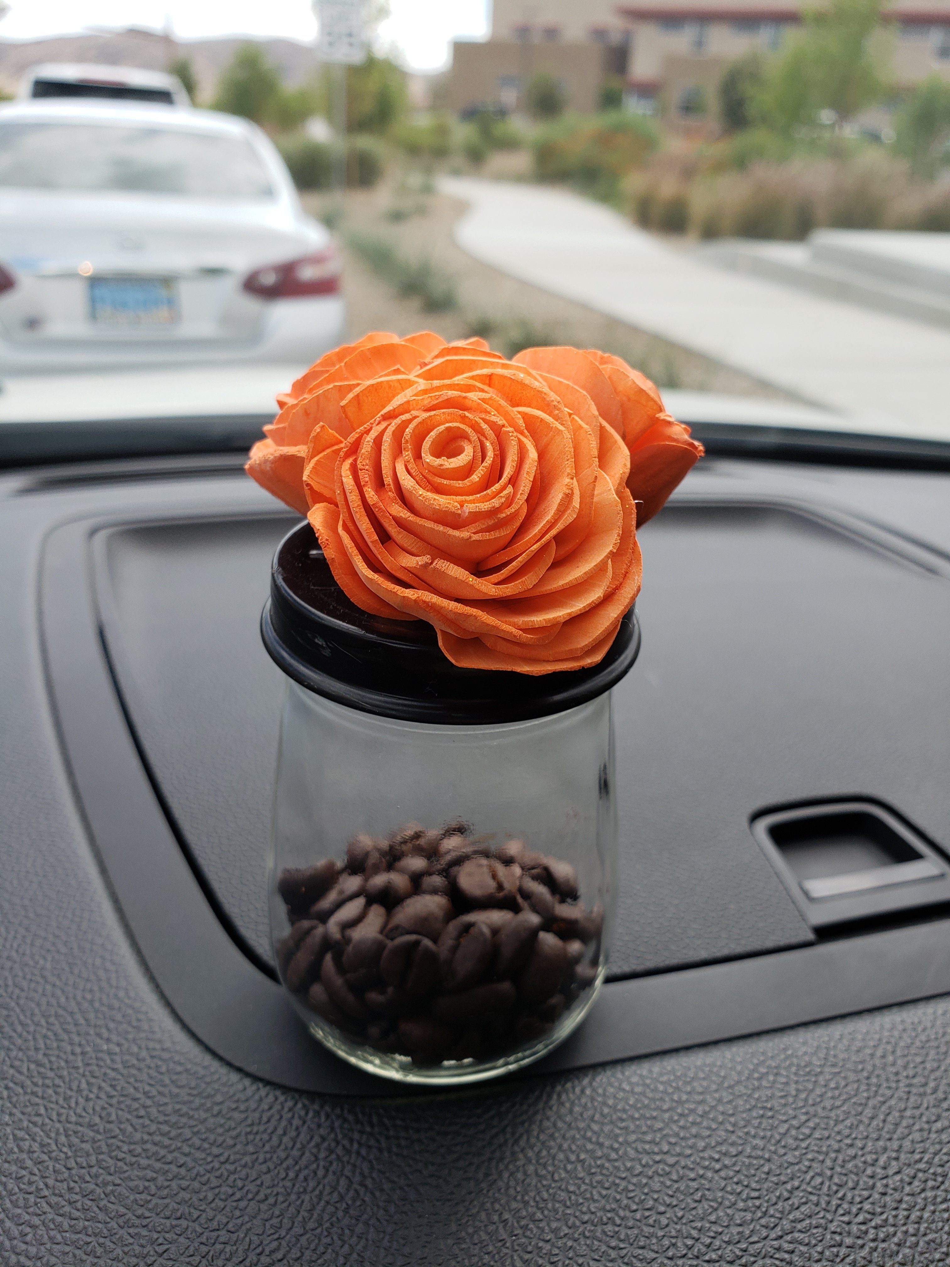 It’s a mini scent warmer!! The cute jar has perforations in it so the lovely scent dissipates slowly from the natural heat of the car interior.